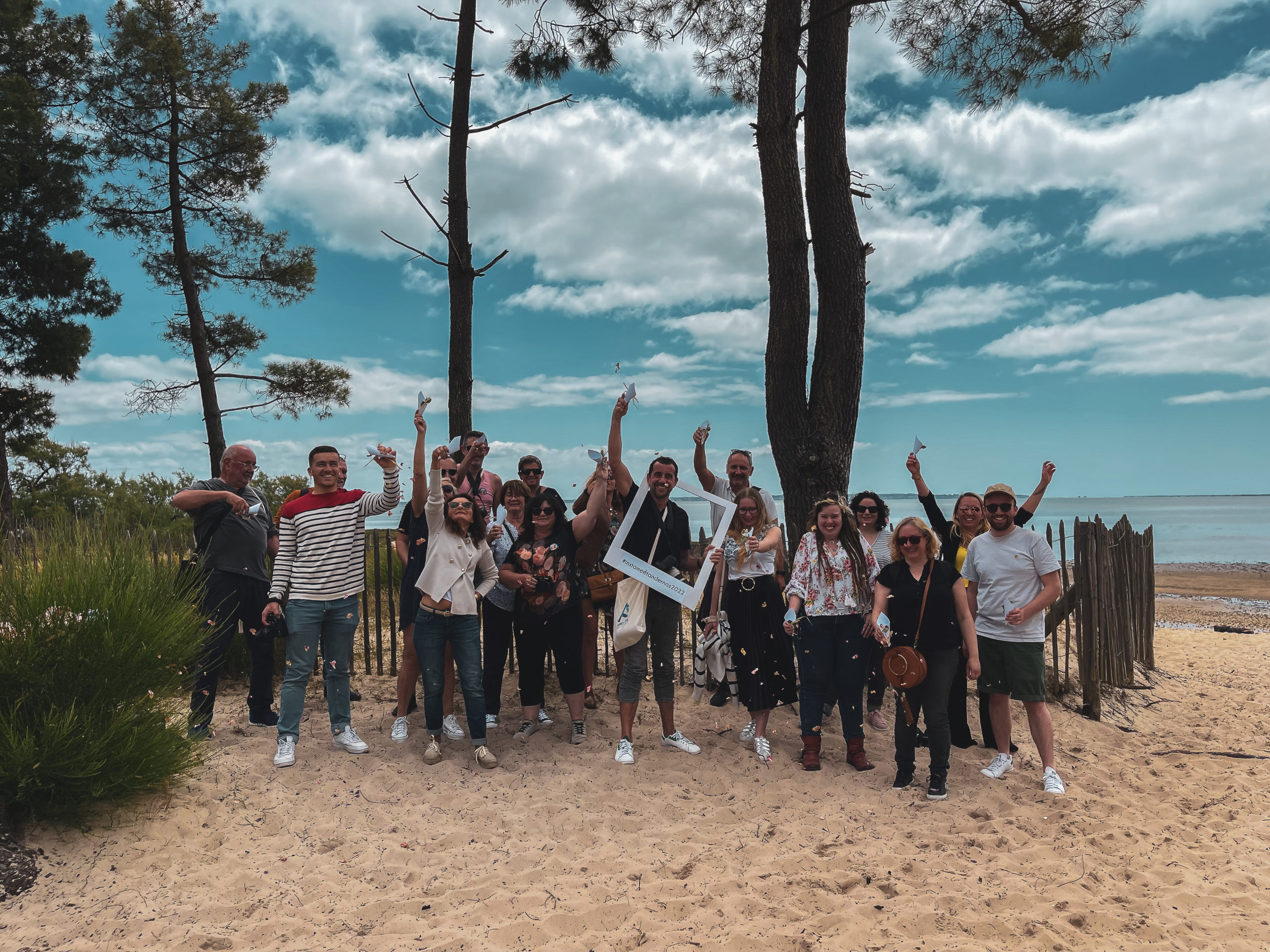 Après un repos bien mérité, la joyeuse troupe reprend la route : direction les Quinconces pour une photo de groupe !